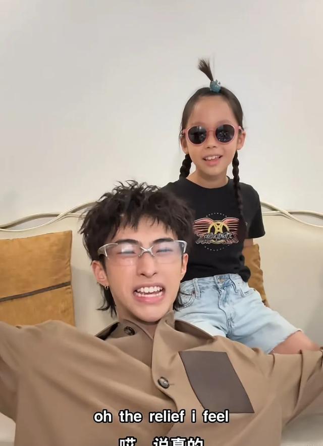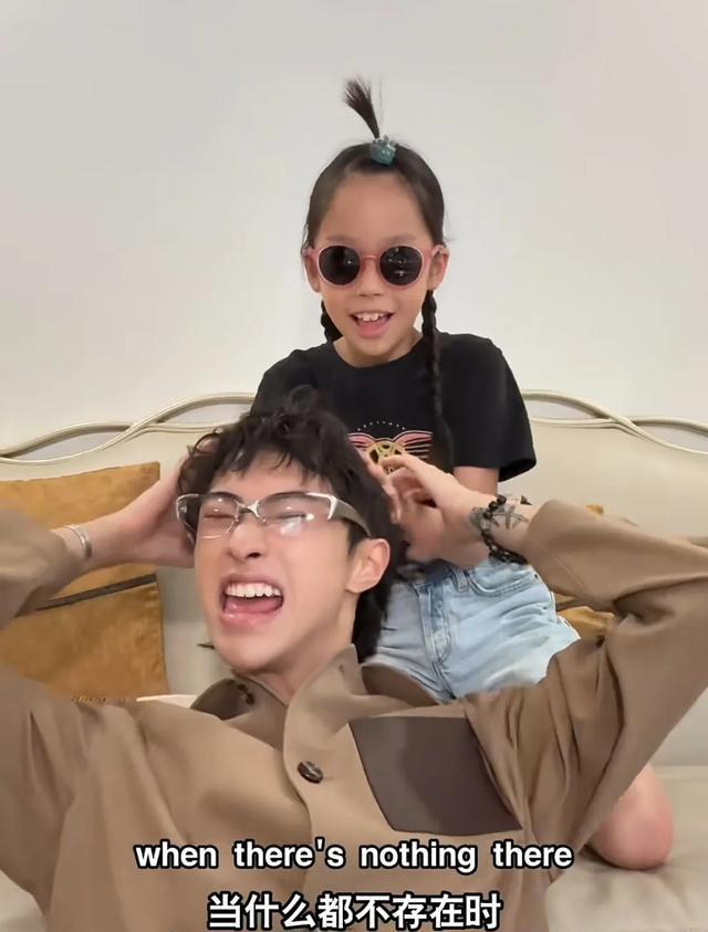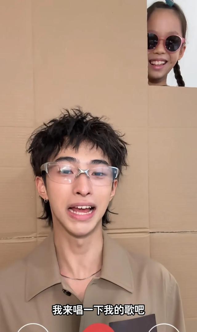 8月23日,恩利又带着妹妹米粒一起拍视频,兄妹俩先是用了一张纸壳做视频聊天背景板,对着镜头假装在打电话,米粒戴着墨镜出镜,在哥哥恩利面前,相当活泼搞怪。