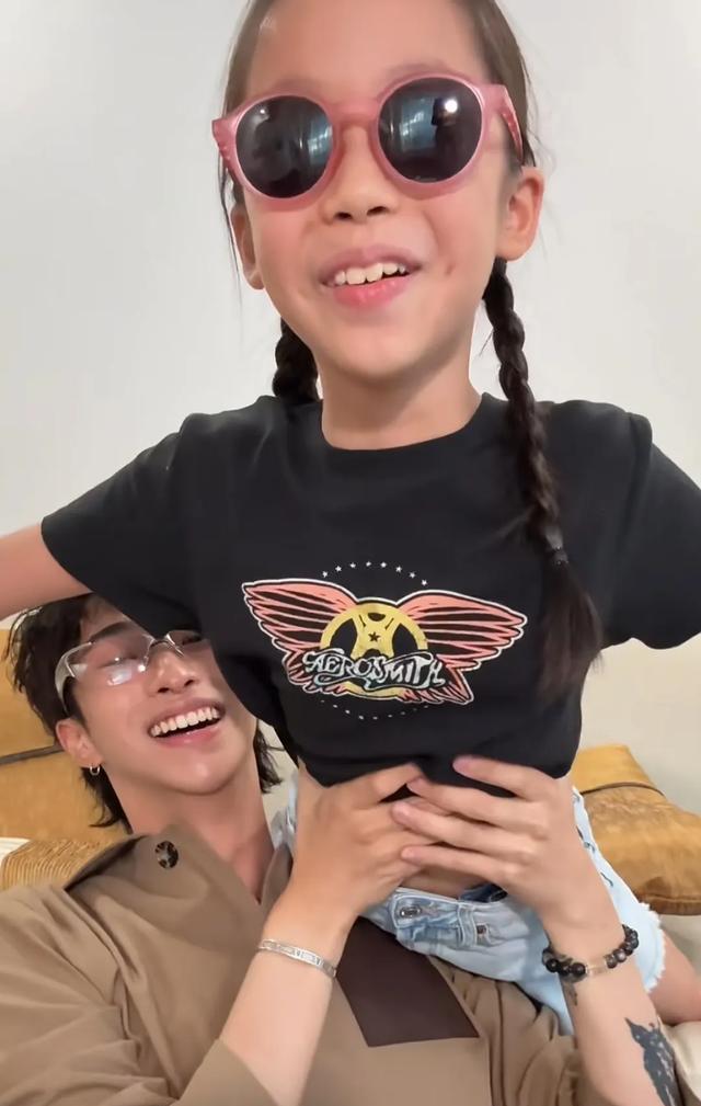 恩利和妹妹米粒年纪差不小,相差14岁,不过兄妹俩感情是真好,米粒还特意学了哥哥的新歌,两人一边唱,米粒一边坐沙发上弄哥哥的头发,兄妹俩都是属于很活泼搞怪的性格。